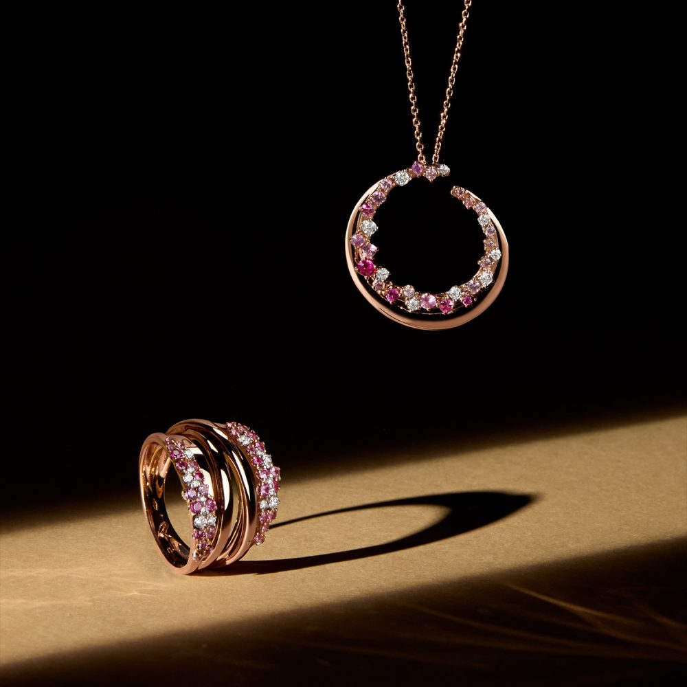 Ogni gioiello della collezione Clouds è realizzato in oro e impreziosito da diamanti e pietre preziose con delicate sfumature di colore, creando un gioco di toni unico e suggestivo. Le forme asimmetriche dei pavè sono delicate e leggere come le nuvole, conferendo un carattere romantico e moderno a ogni gioiello.
