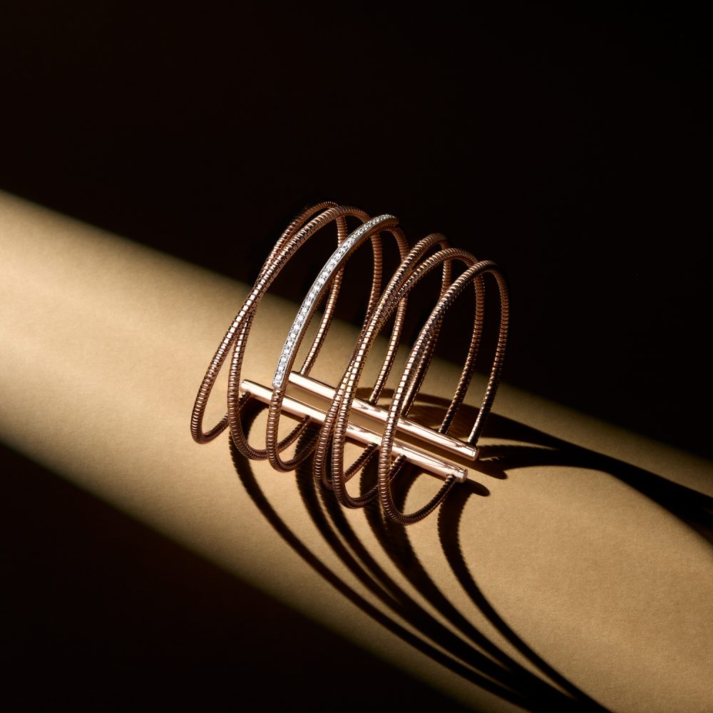 La collezione Kaos prende vita attraverso l’evoluzione di forme circolari, dove il dinamismo incontra l’eleganza. Dall’apparente casualità nasce una composizione armoniosa, in cui le forme libere si combinano con un’estetica raffinata e sofisticata. La ricerca stilistica è orientata verso un movimento caotico e irregolare, dove la tecnica artigianale del tubogas si trasforma in un cult contemporaneo grazie al design innovativo di K di Kuore.