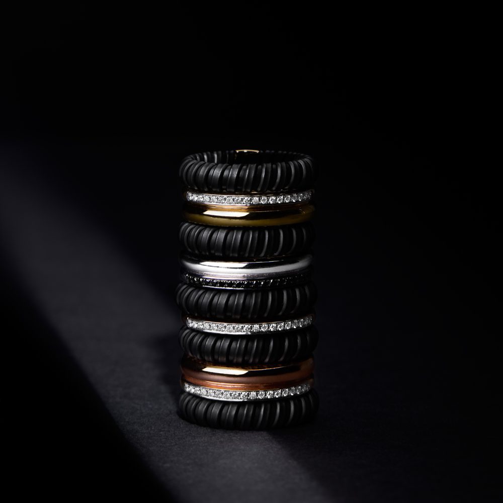 Creazioni dove ogni dettaglio è pensato per aggiungere un tocco di lusso discreto, come i preziosi anelli dorati e i delicati pavé di diamanti che decorano questi gioielli dall'aspetto minimalista ma allo stesso tempo audace, perfetti per chi cerca un accessorio che parli di stile e personalità. La collezione Prestige Noir è ideale per chi desidera esprimere la propria individualità attraverso gioielli che combinano tradizione e innovazione.