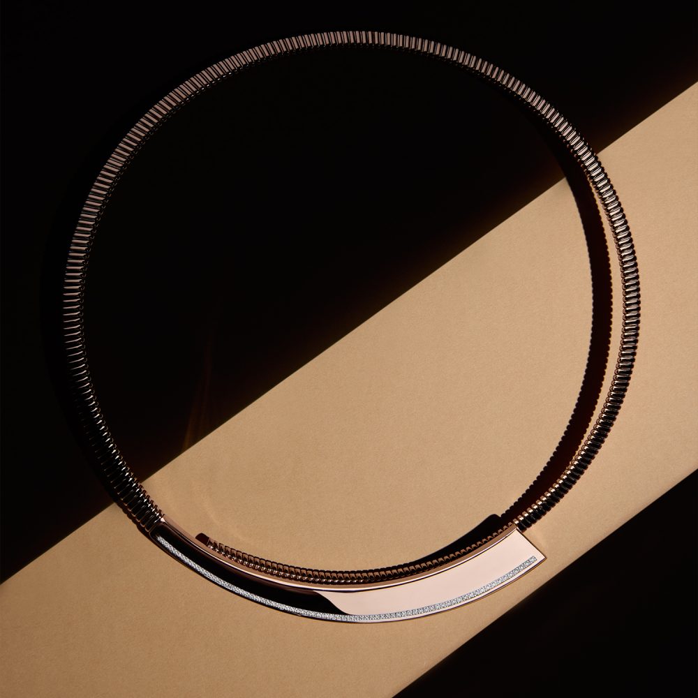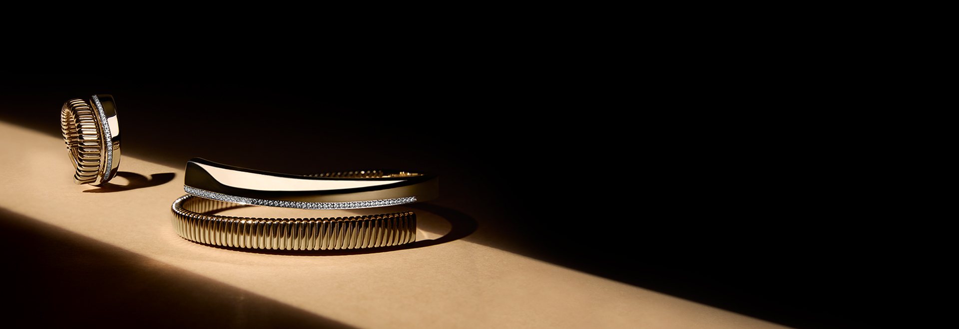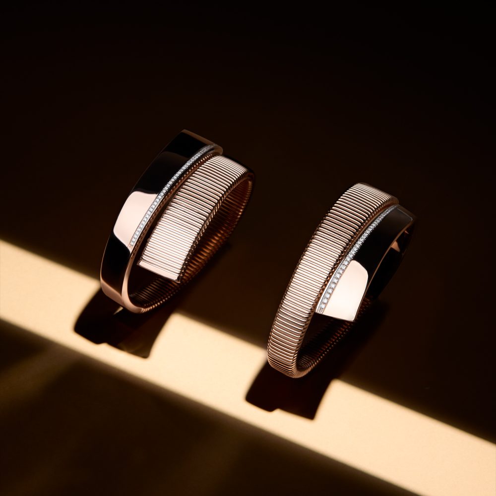 Moma combines modernity and tradition, thanks to its impactful design. Majestic jewellery, entirely hand-made, real works of art. The K di Kuore tubogas effect alternates with polished gold to create ever-changing movement and classic, timeless style.