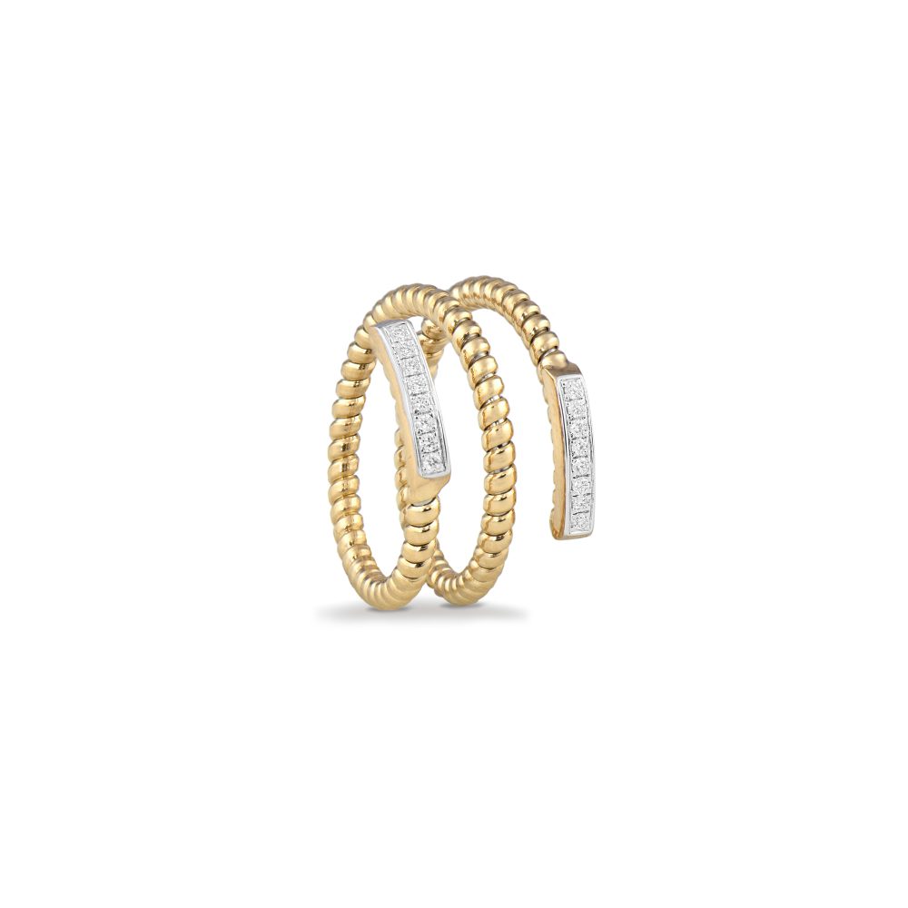 The gold adapts to the body of the woman wearing it. The section of the gold elements becomes tighter, making these jewels suitable for every-day wear.