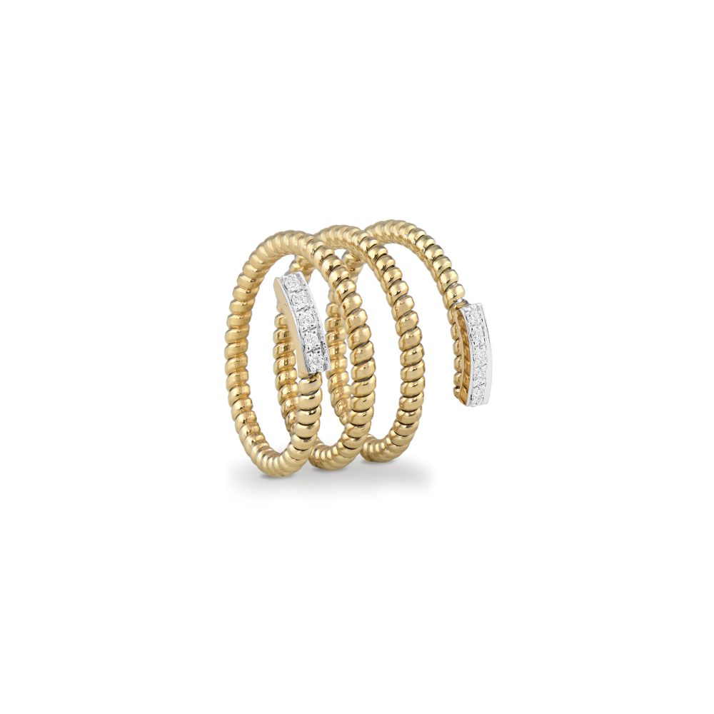 The gold adapts to the body of the woman wearing it. The section of the gold elements becomes tighter, making these jewels suitable for every-day wear.