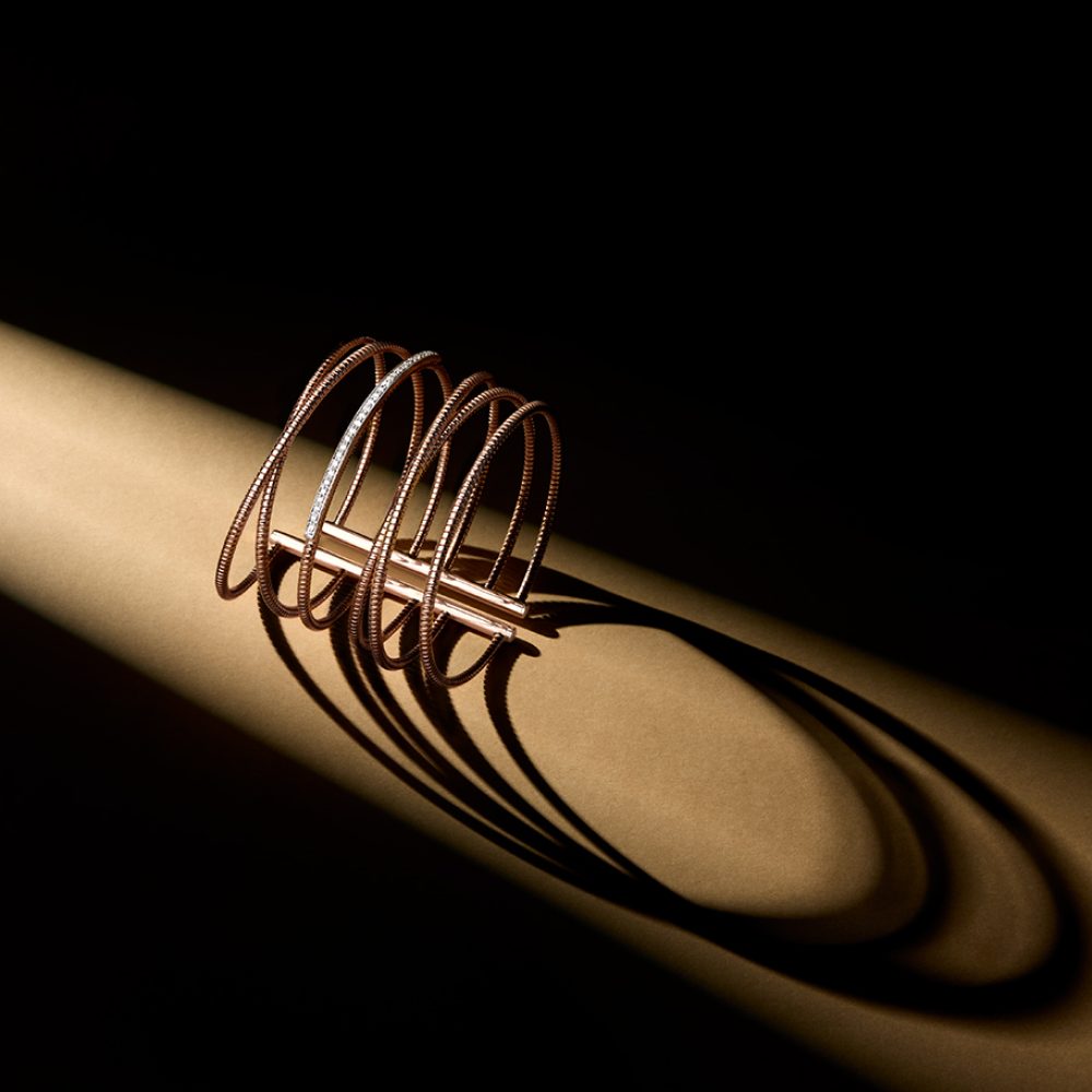 The Kaos Collection comes to life through the evolution of circular forms, where dynamism links with elegance. From apparent chance comes a harmonious composition, in which free forms combine with a refined and sophisticated aesthetic. The stylistic study is oriented towards a chaotic and irregular movement, where the artisanal tubogas technique is transformed into a contemporary cult thanks to the innovative design of K di Kuore.