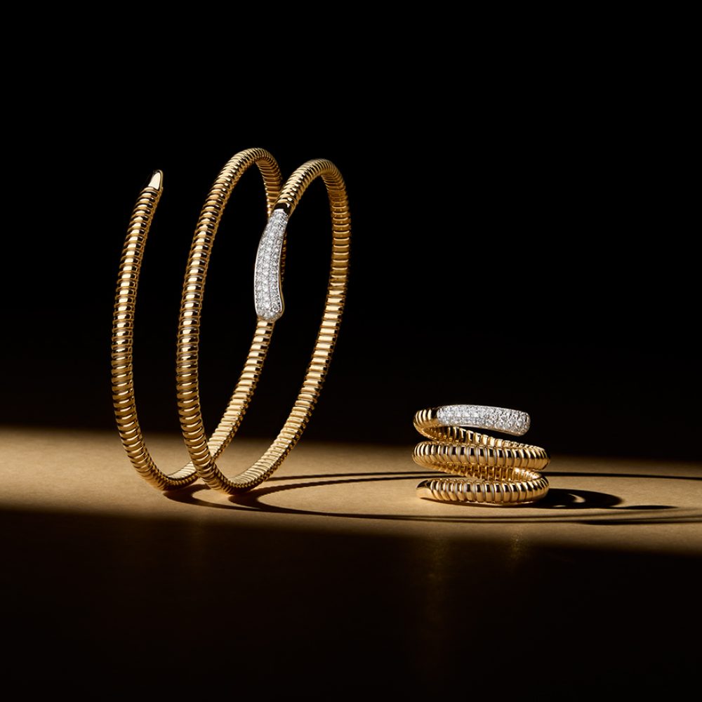 The pieces in the Snake collection are elegant and on trend. The collection distinguished by the use of the tubogas technique, an artisanal tradition that became a contemporary cult thanks to K di Kuore's innovative design.