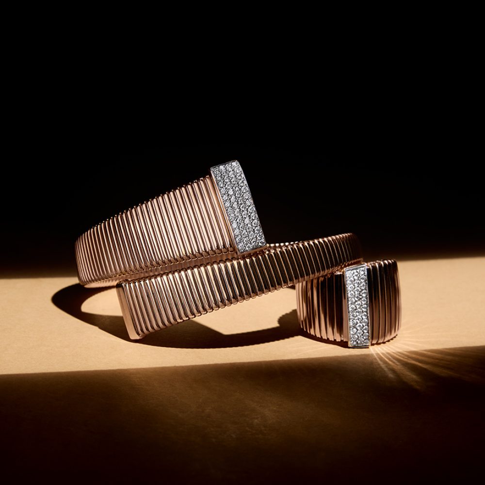 Wide collection jewels are impressive pieces, characterized by ample, clean and enveloping surfaces. These jewels carry a history of elegance and refinement.