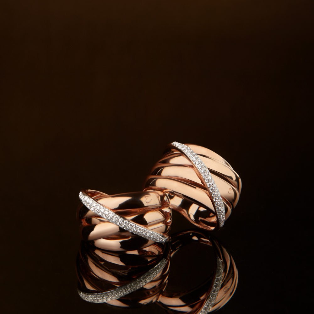 Chloè rappresenta la filosofia di K di Kuore: artigianalità contemporanea fatta di raffinatezza, stile ed eleganza. Gioielli sofisticati, morbidi intrecci impreziositi da diamanti che creano un continuo gioco di riflessi pieni di luce e fascino.