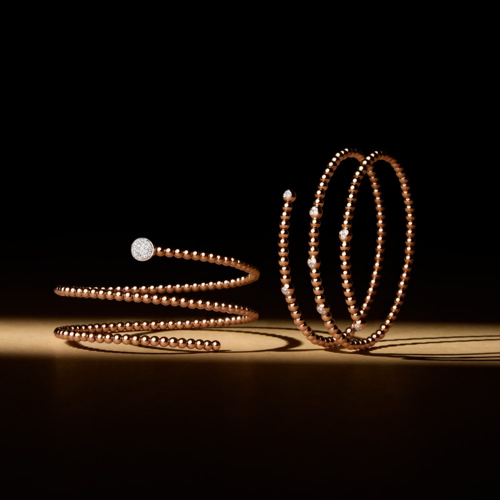 La sfera, come simbolo della perfezione, è al centro di questa collezione K di Kuore dal design essenziale. L’insieme di elementi a sezione tonda e gli elementi preziosi conferiscono un carattere unico a questi gioielli.